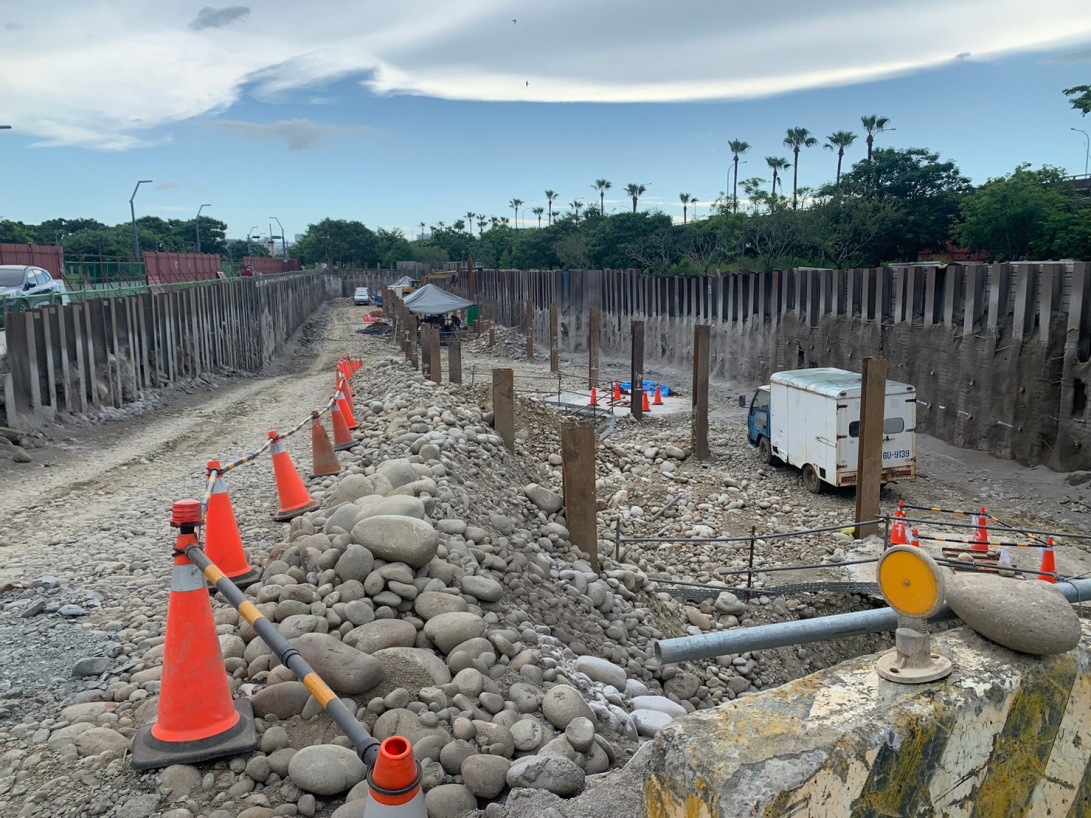 工地打入H型鋼後開挖: